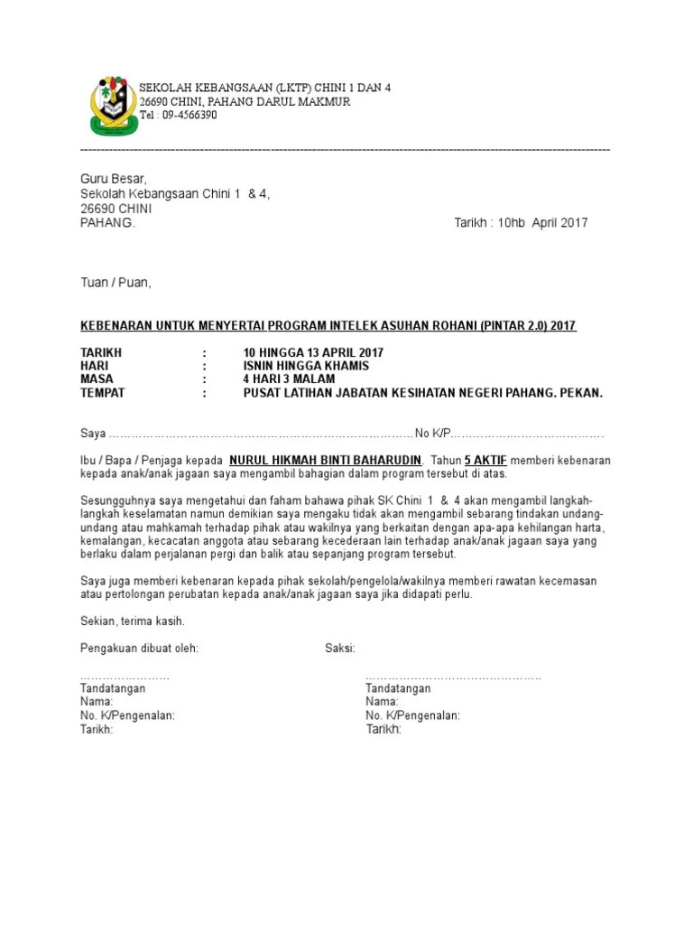 Seperti apa contoh nya yang baik dan benar? Temerloh pahang darul makmur pengarah institut pendidikan guru . Pdf pendaftaran tanah wakaf dari perspektif perundangan. Surat kebenaran adalah surat yang memberi kuasa atau kebenaran kepada pihak yang tertentu untuk melakukan sesuatu dibawah keizinan anda. Contoh surat lamaran kerja yang kreatif yang sederhana di atas menggunakan nuansa warna biru yang memberi kesan tenang, bertanggung jawab, . Contoh surat kiriman rasmi kepada dato surasm. Yang bertanda tangan di bawah ini : Segala kerjasama dan perhatian daripada pihak tuan amatlah saya hargai . 3.dengan itu,saya mengaku akan bertanggungjawab di atas tindakan memberi kebenaran ini. (nama suami) (alamat) no.plat kenderaan: Contoh surat kebenaran dari pemi li k.